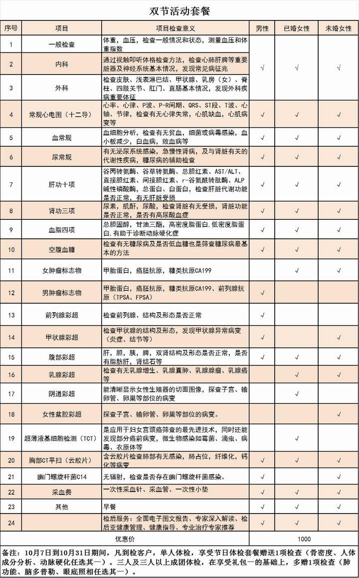 单人体检,享受节日体检套餐赠送1项检查(骨密度、人体成分分析、动脉硬化任选其一)。
