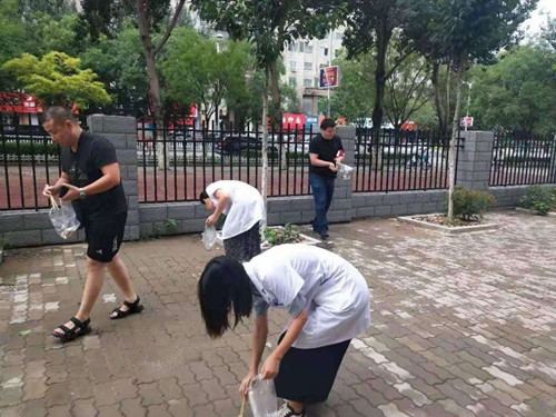 为深入贯彻落实习近平总书记关于志愿服务重要讲话精神,在创建国家卫生城市、巩固全国文明城市创建成果、服务旅游旺季的生动实践中,弘扬奉献、友爱、互助、进步的志愿精神,继续以实际行动书写新时代的雷锋故事, 积极响应“接力沈汝波,为民做好事”的号召,军工医院医技党支部于2019年8月3日上午,到玉峰里柳江家属院,进行捡拾垃圾美化环境的活动。
