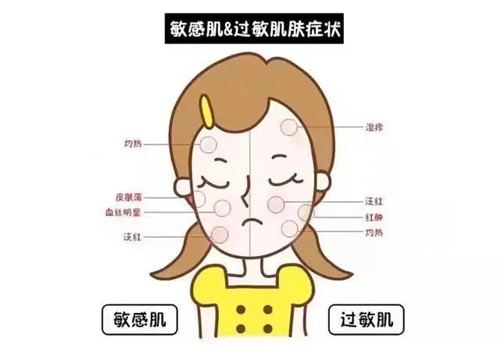 过敏肌:是皮肤因为接触到过敏源,而引起的红、肿、热、痒、痛的免疫反应,无需治疗远离过敏源就会慢慢好转