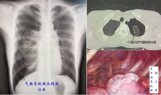 听诊+叩诊:医生使用听诊器时会发现呼吸音消失,叩诊时呈现“鼓音”。胸部X光:最常用,可见肺边缘与胸壁分离。
