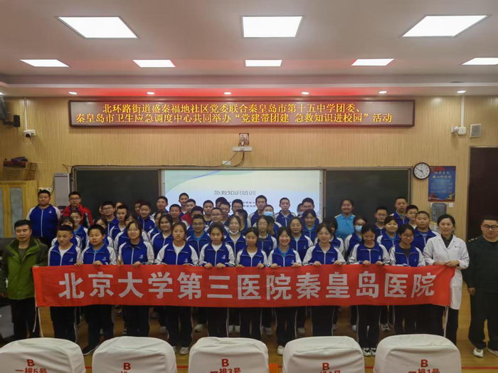 为增强师生急救意识,提升自救互救能力,秦皇岛市北环路街道盛秦福地社区党委联合秦皇岛市第十五中学团委、秦皇岛市卫生应急调度中心共同举办“党建带团建 急救知识进校园”活动。4月21日,北京大学第三医院秦皇岛医院急诊科医务人员走进秦皇岛市第十五中学,为师生们带来了一场生动实用的急救知识技能讲解课。