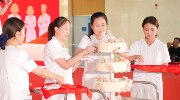 大会最后,两名十佳医生代表推着庆祝蛋糕上台,共同切分蛋糕。这一温馨环节象征着过去一年辛勤耕耘的甜蜜收获,也寄托着对未来美好发展的圆满祝福。医师们纷纷表示,将努力践行“德馨于行 技精于勤”精神,不断提升自身专业素养和服务水平,为医院快速发展和国家区域医疗中心建设而努力奋斗。