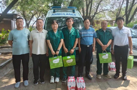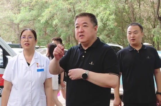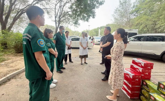院领导实地查看了医疗点的运行情况,重点检查了物资储备与药品配备情况,还现场发放了包含藿香正气水、清凉贴、清凉沐浴露等物品的防暑降温礼包。