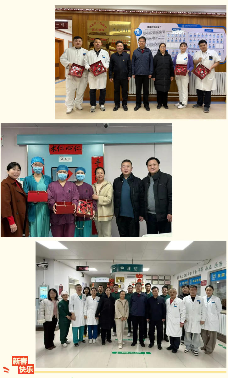 党委书记王强,常务副院长张文利,纪委书记李爱琴,副院长吴晓玉、谭强、于丹军深入临床一线亲切看望并慰问节日期间坚守岗位的医务工作者,向他们送上温暖的节日问候和诚挚的新春祝福。